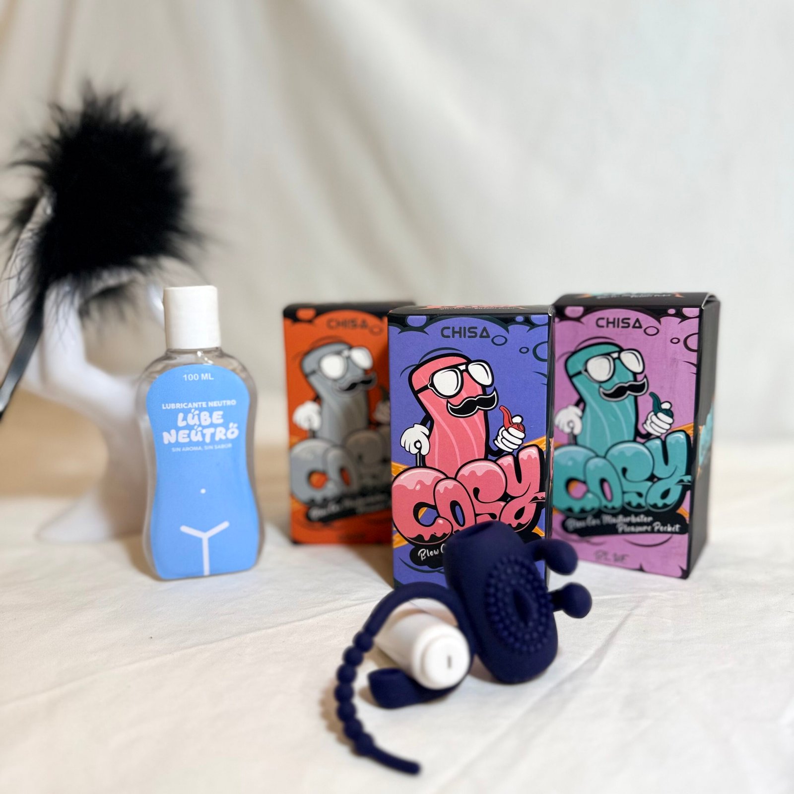 - 1 COSY de CHISA es una línea de masturbadores que se alejan del estándar realista y juegan con colores y formas mas atrevidas.Textura suave y diseños alocados. Su estructura interna es ideal para estimular el pene con cada penetración, todo esto acompañado de un pequeño sobre de lubricante, para tener un placer al inmediato de su llegada.